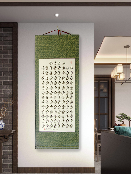 99 Names of Allah (Al Asma Ul Husna) Vertically Handwriting Authentic Chinese style Calligraphy Scroll Artworks