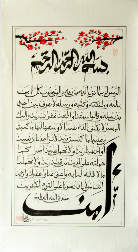 Islamic Chinese Calligraphy of Surah Al- Baqarah (Ayat 285-286) Islamic Wall Art