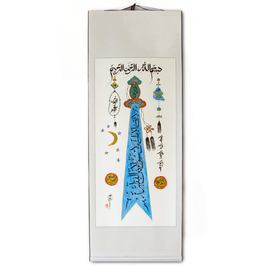 Islamic Calligraphy Scroll works with "Allahuakbar" and "Alihamdulillah" in Unique Chinese Style